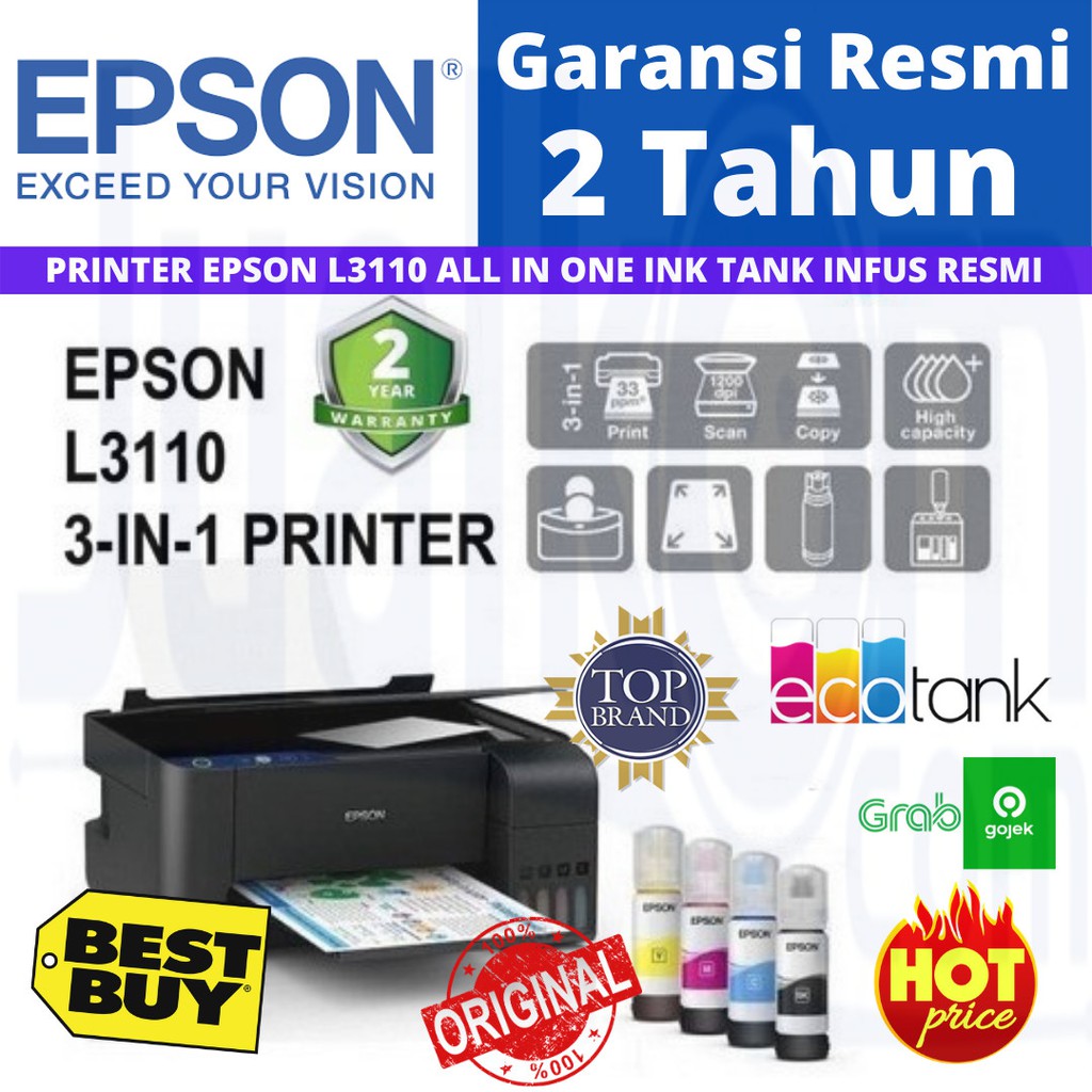 Jual Printer Epson L3110 Eco Tank All In One Pengganti L360 L 360 Garansi Resmi Print Scan Copy L 3110 Indonesia Shopee Indonesia